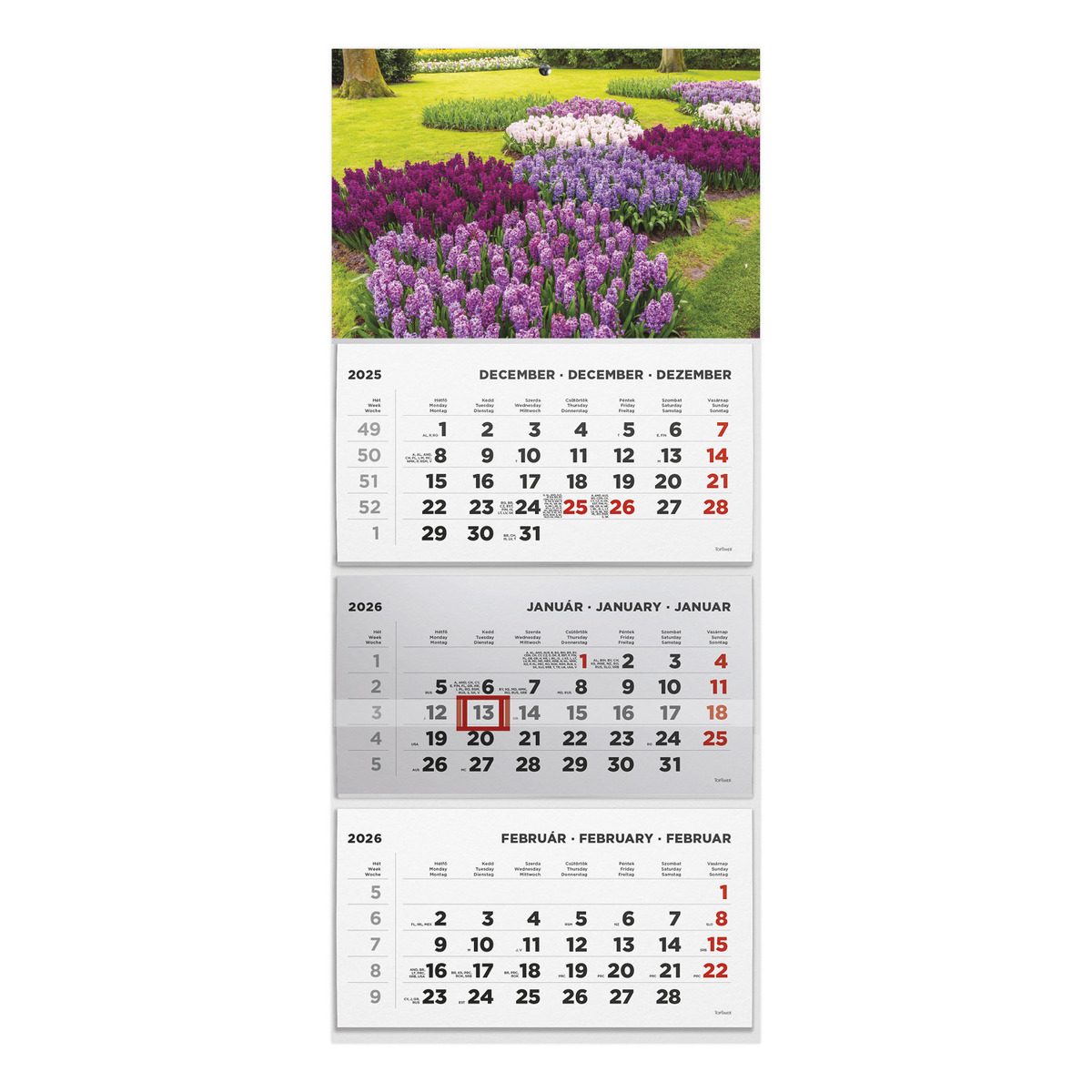 T074, 3 tömbből álló 3 havi speditőr naptár - Kert fejrésszel