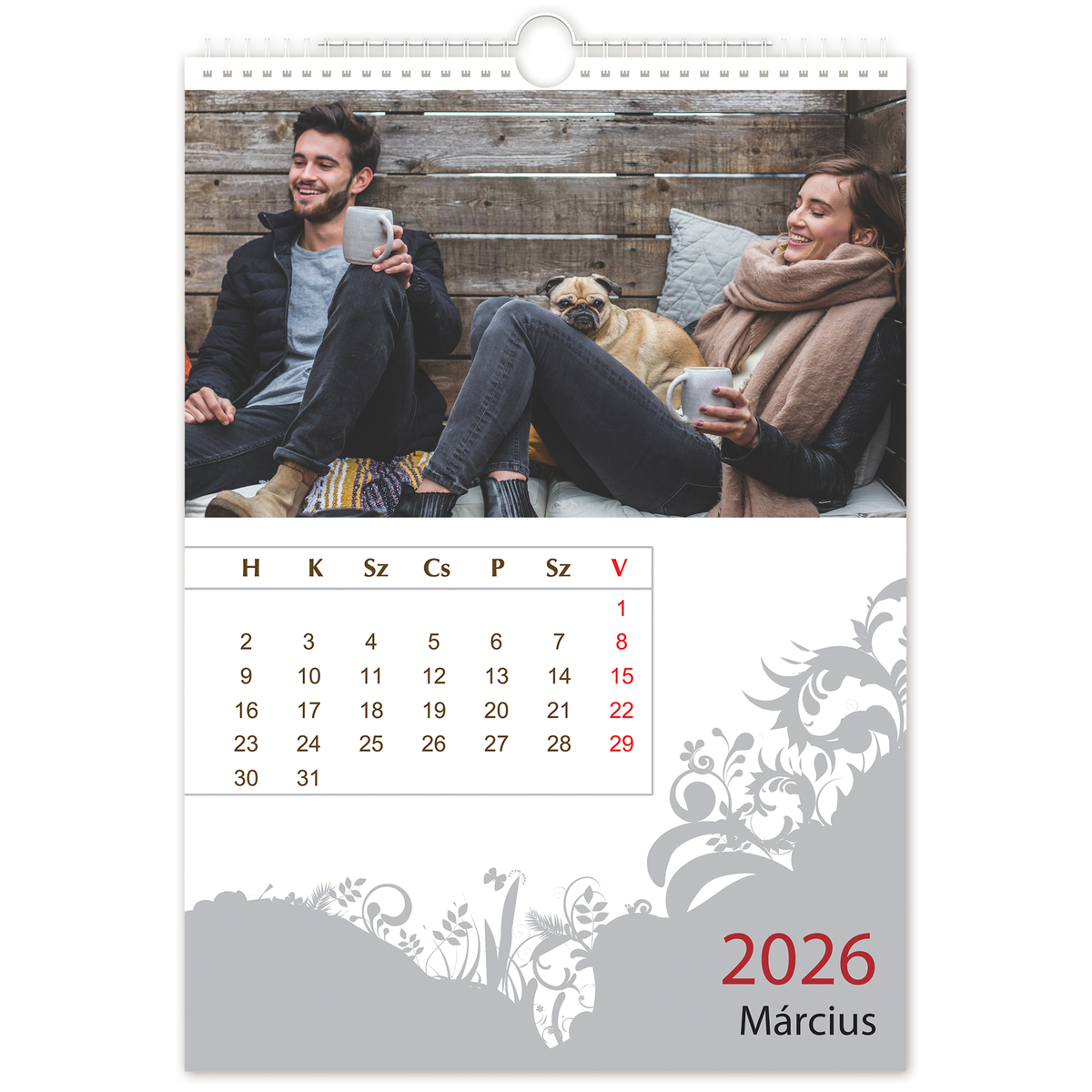 Exkluzív minőségű színes egyedi naptár 160 grammos papíron, spirálozva, előlapfóliával, digitális nyomdagépen nyomva. A naptár kezdő és végdátuma szabadon állítható, így akár évekre előre készíthet naptárat.
