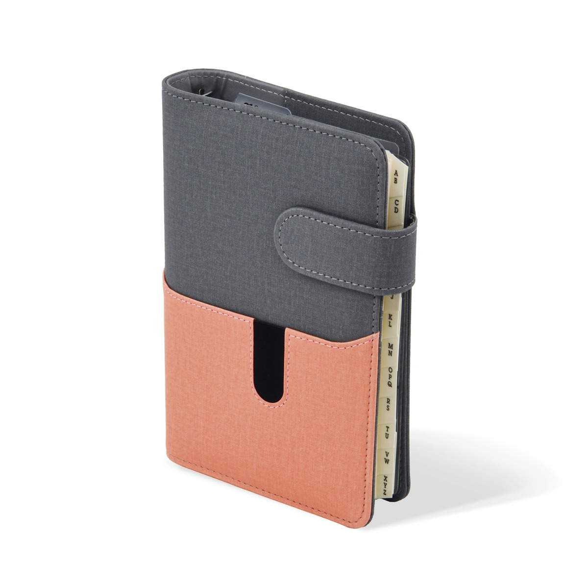 Divatos színösszeállításban, borítóján praktikus zsebbel készült, rejtett mágnessel záródó, krém (Chamois) betétlapokkal töltött kalendárium.
