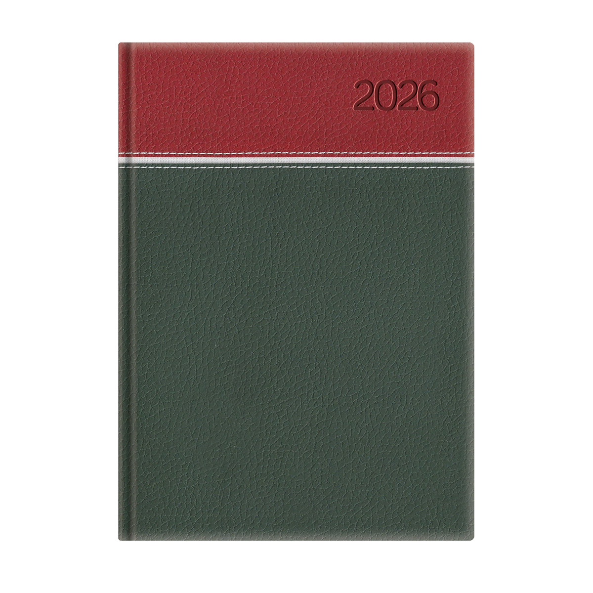 Matt, bőrhatású, hőre színeződő műbőr bevonóval, vízszintes díszítő csík bevarrásával készült, fehér tömbös heti beosztású naptár, jelzőszalaggal és sarokperforációval. Elöl-hátul szivacsos fedlap. Színes térképet tartalmaz.