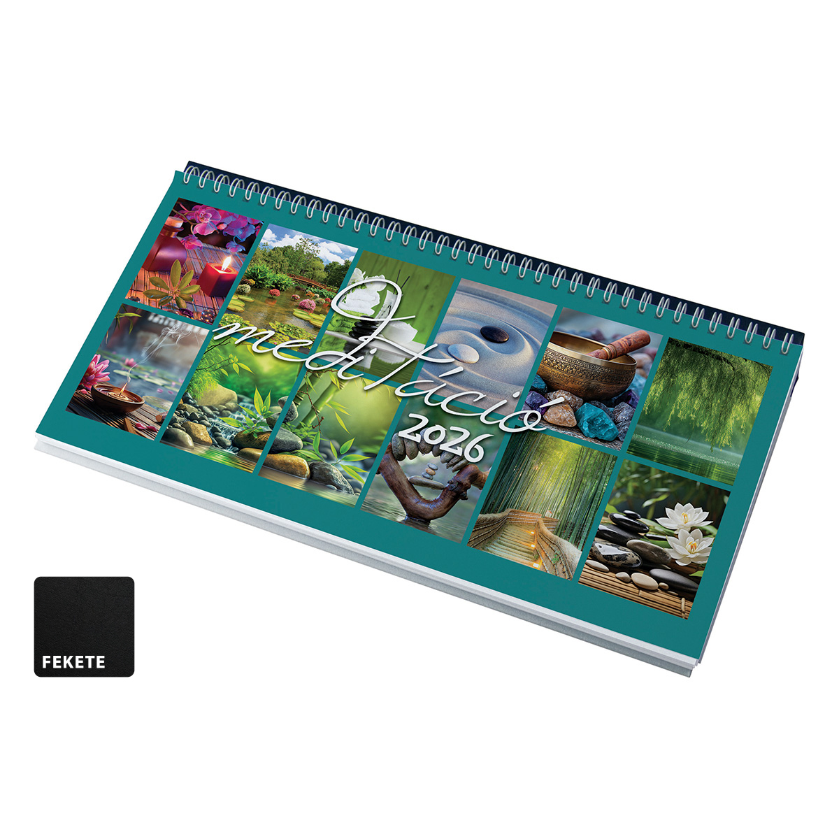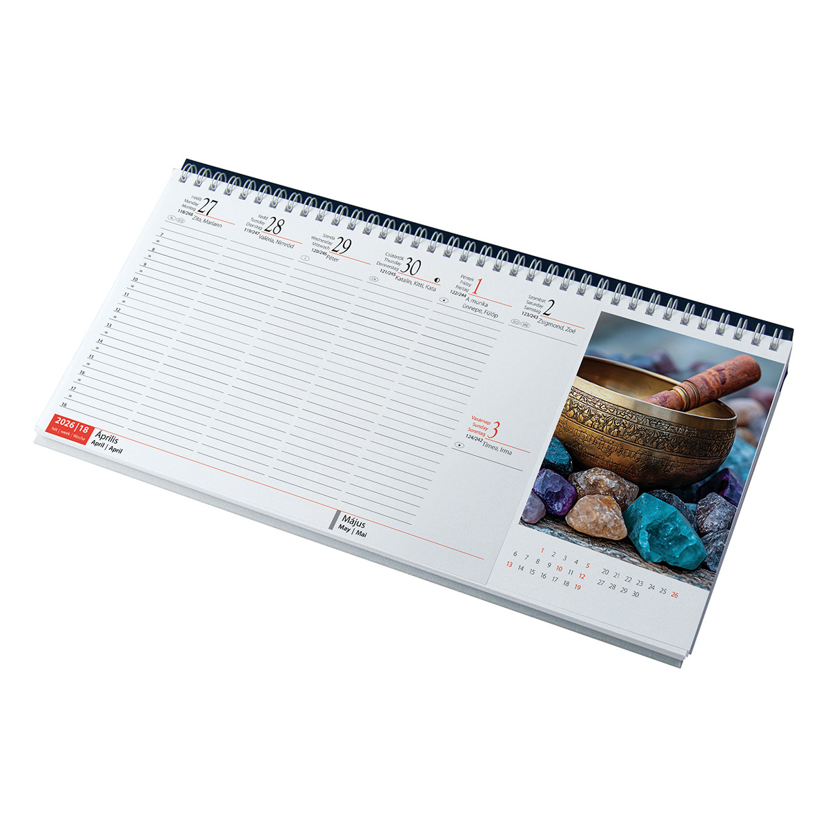 Ikerspirállal összefűzött, fehér lapos, fekvő asztali naptár