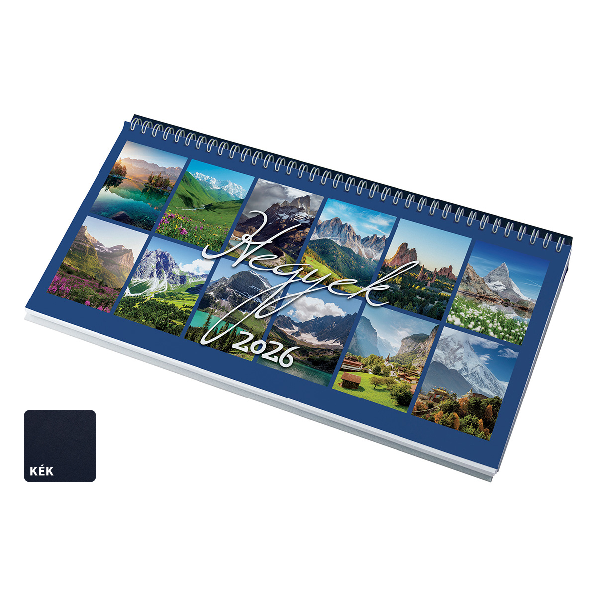 Ikerspirállal összefűzött, fehér lapos, fekvő asztali naptár