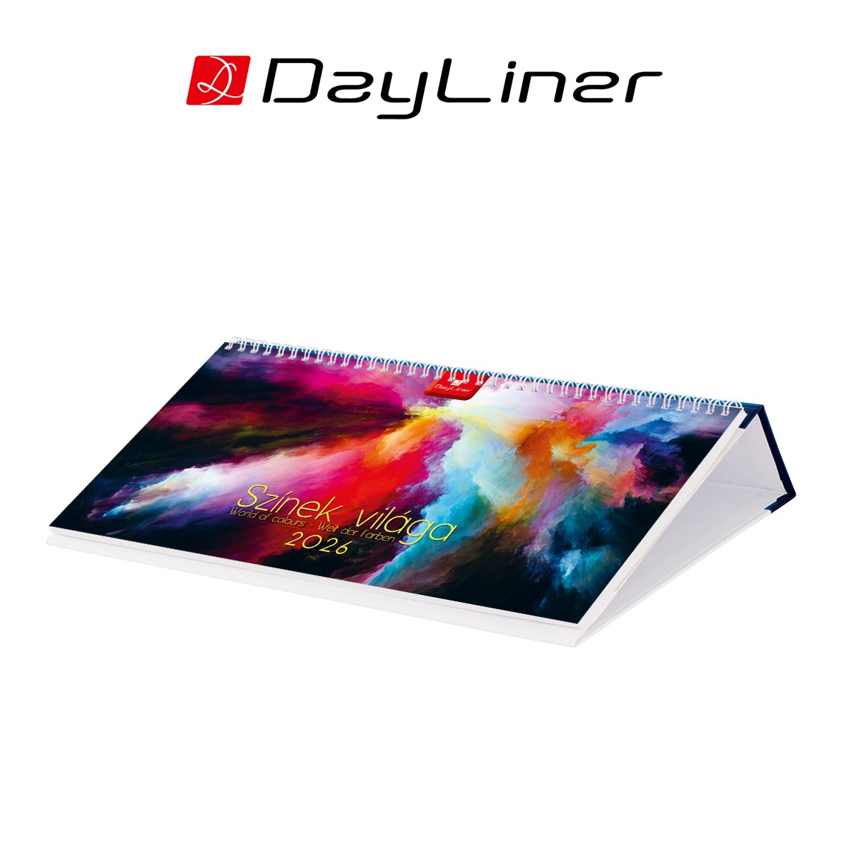 Színek világa, fehér lapos fekvő asztali naptár, 12 db színes képpel.