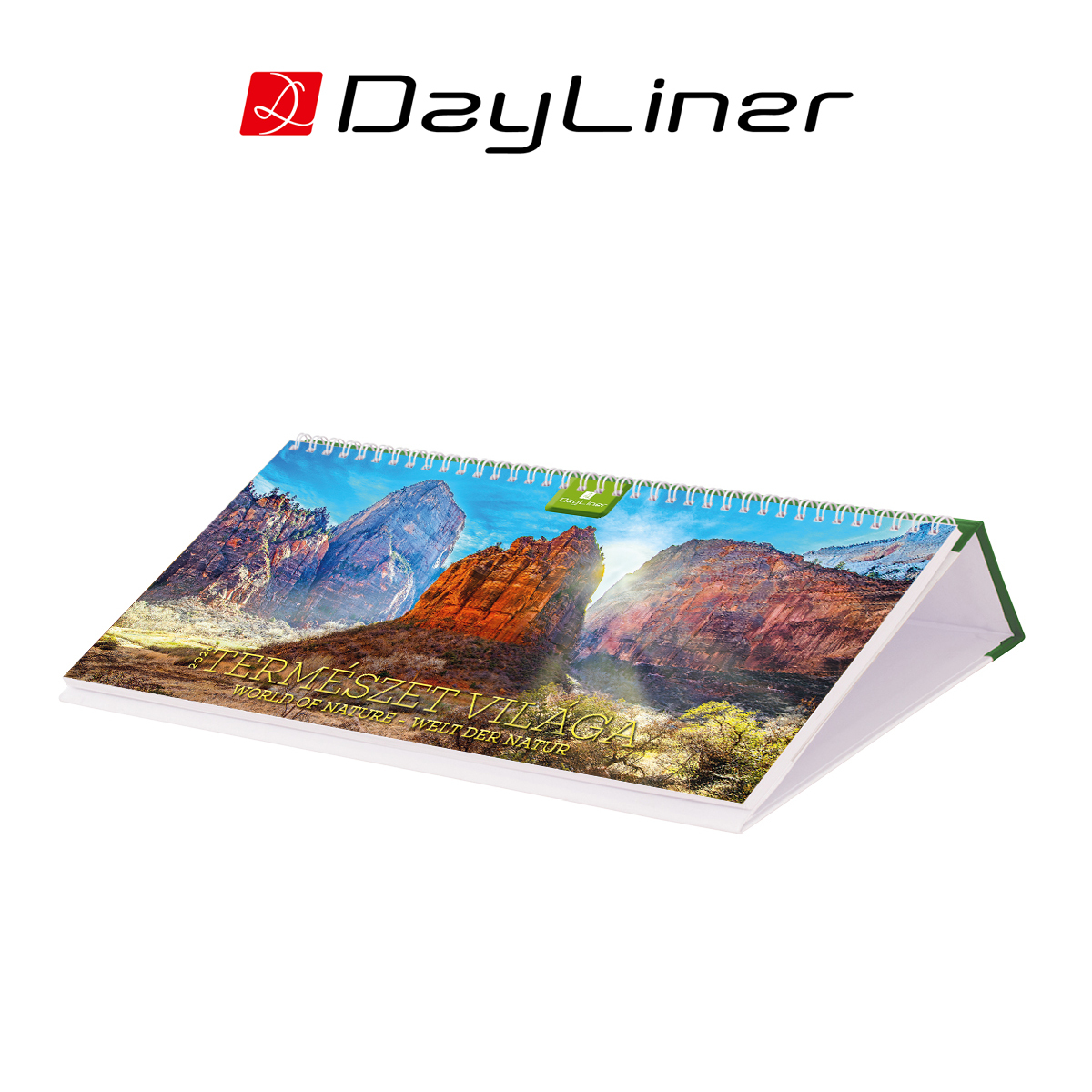 Természet világa, fehér lapos fekvő asztali naptár, 54 db színes képpel.