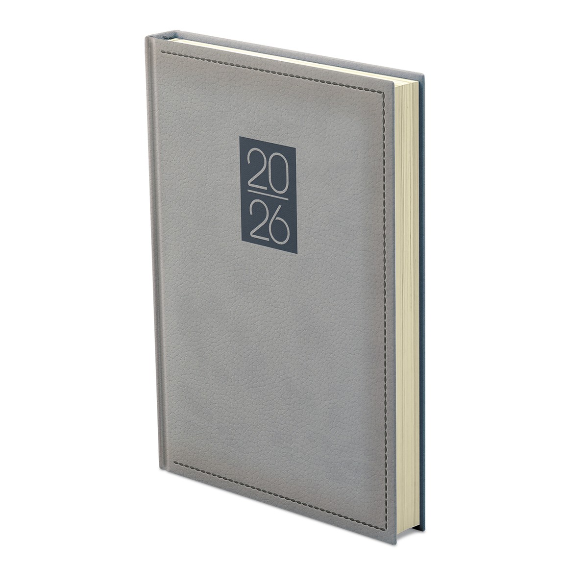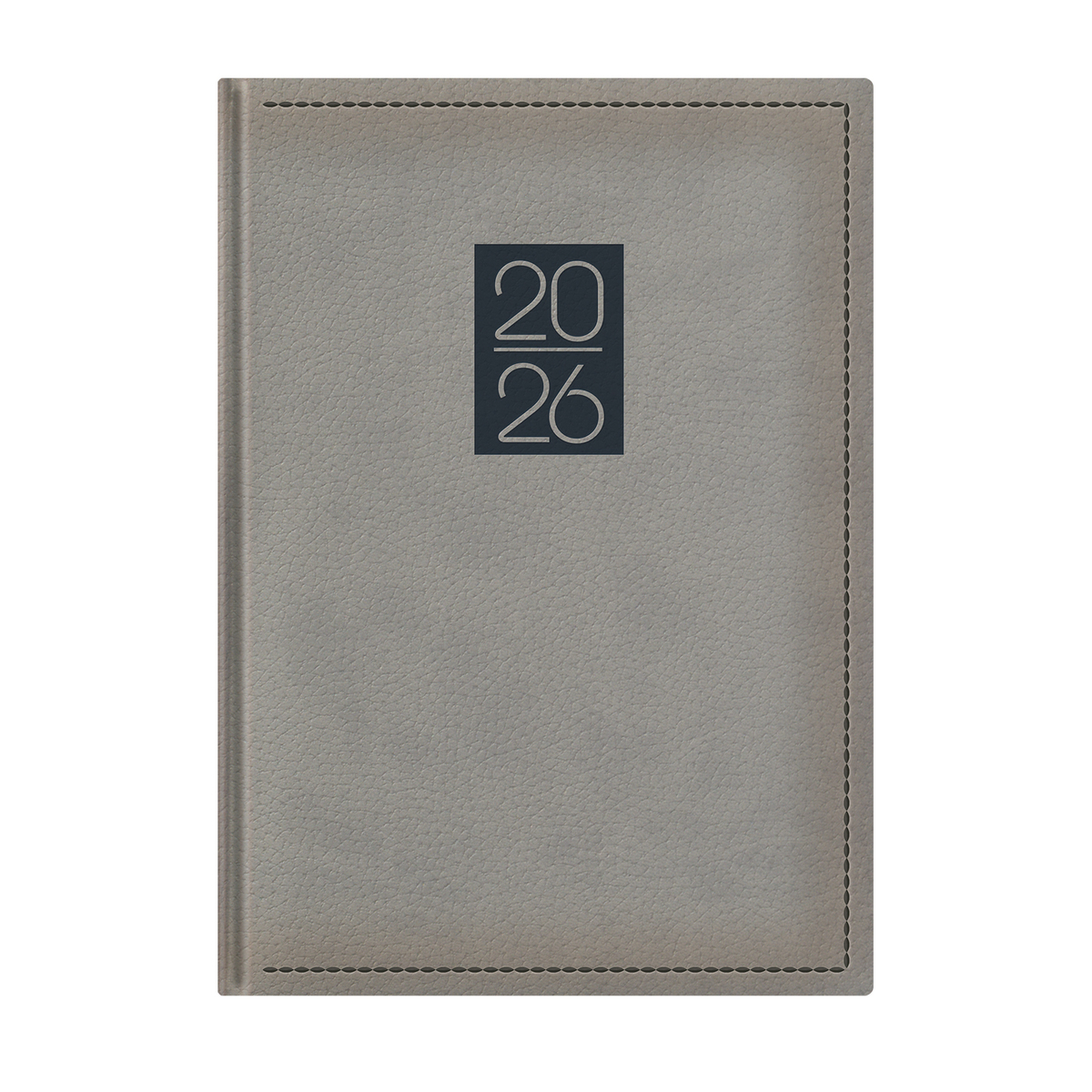 Prégelt, bőrhatású, hőre színeződő műbőr bevonóval, díszkerettel és elegáns évszámmal ellátott, chamois (krémszínű) tömbös napi beosztású naptár, színes oromszegővel, jelzőszalaggal és sarokperforációval. Elöl-hátul szivacsos fedlap, cérnafűzéssel. Színes térképet tartalmaz.