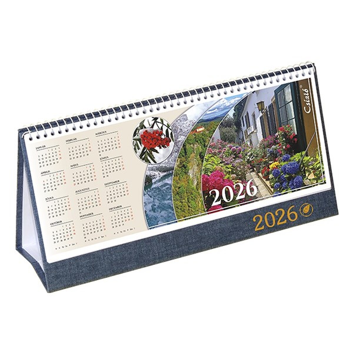Asztali naptár képes CSÍZIÓ álló fehér lapos idézetes bőr hatású Öko hátlap jeans 2026.