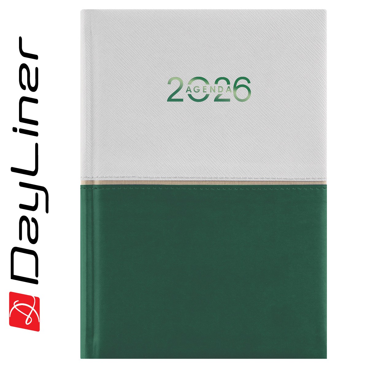 Kontrasztos színek és anyagok találkozása, melyet az ezüst csík és a fémes csillogású évszám tesz teljessé. A termék fehér lapokkal készül.