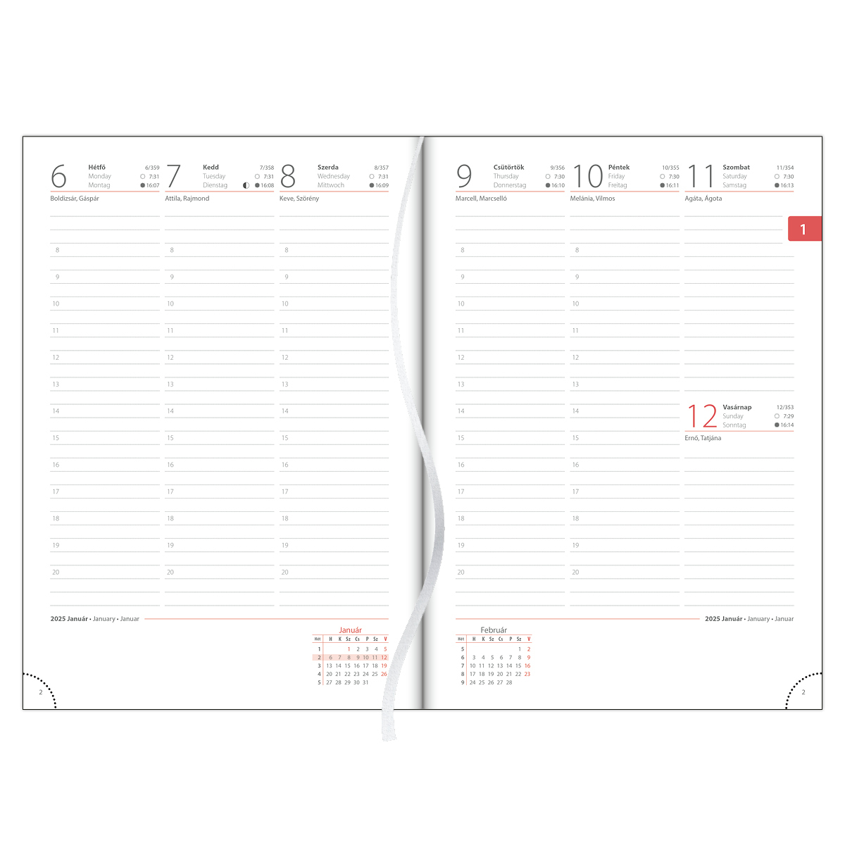 Selymes, puha tapintású anyag, valamint letisztult vonalak jellemzik a Pannon naptárcsaládot. A termék fehér lapokkal készül.