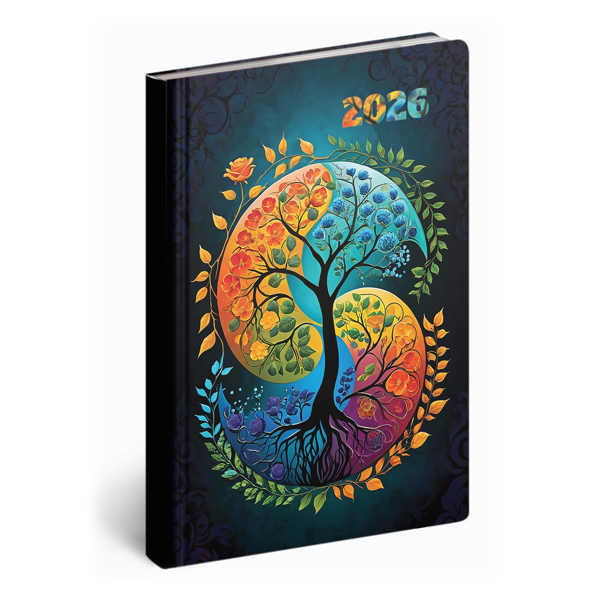 3D-lakkal felületnemesített, kemény táblával, lekerekített sarkokkal, és színes gumiszalaggal biztosított zsebnaptár.