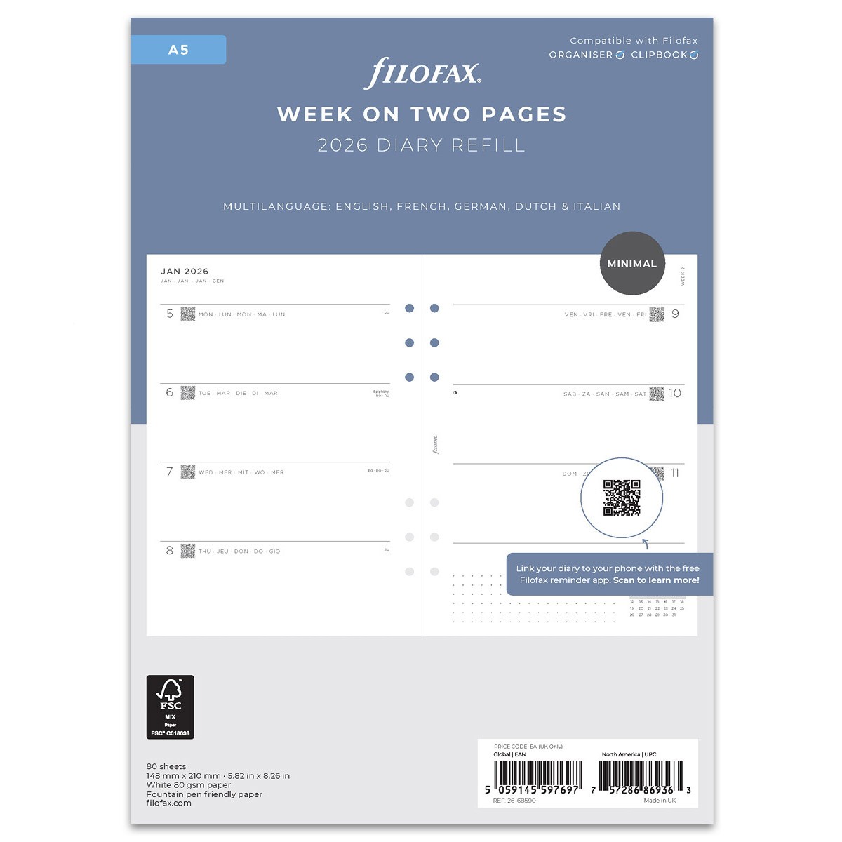 Filofax Naptárbetét + Pótlapok csomag A5 Minimal 2026