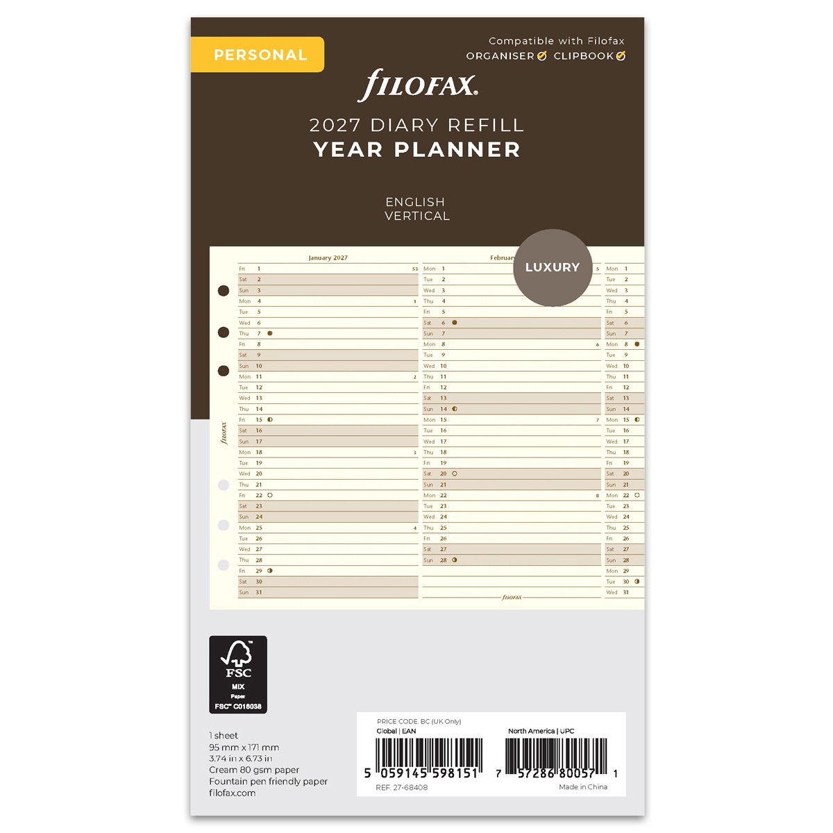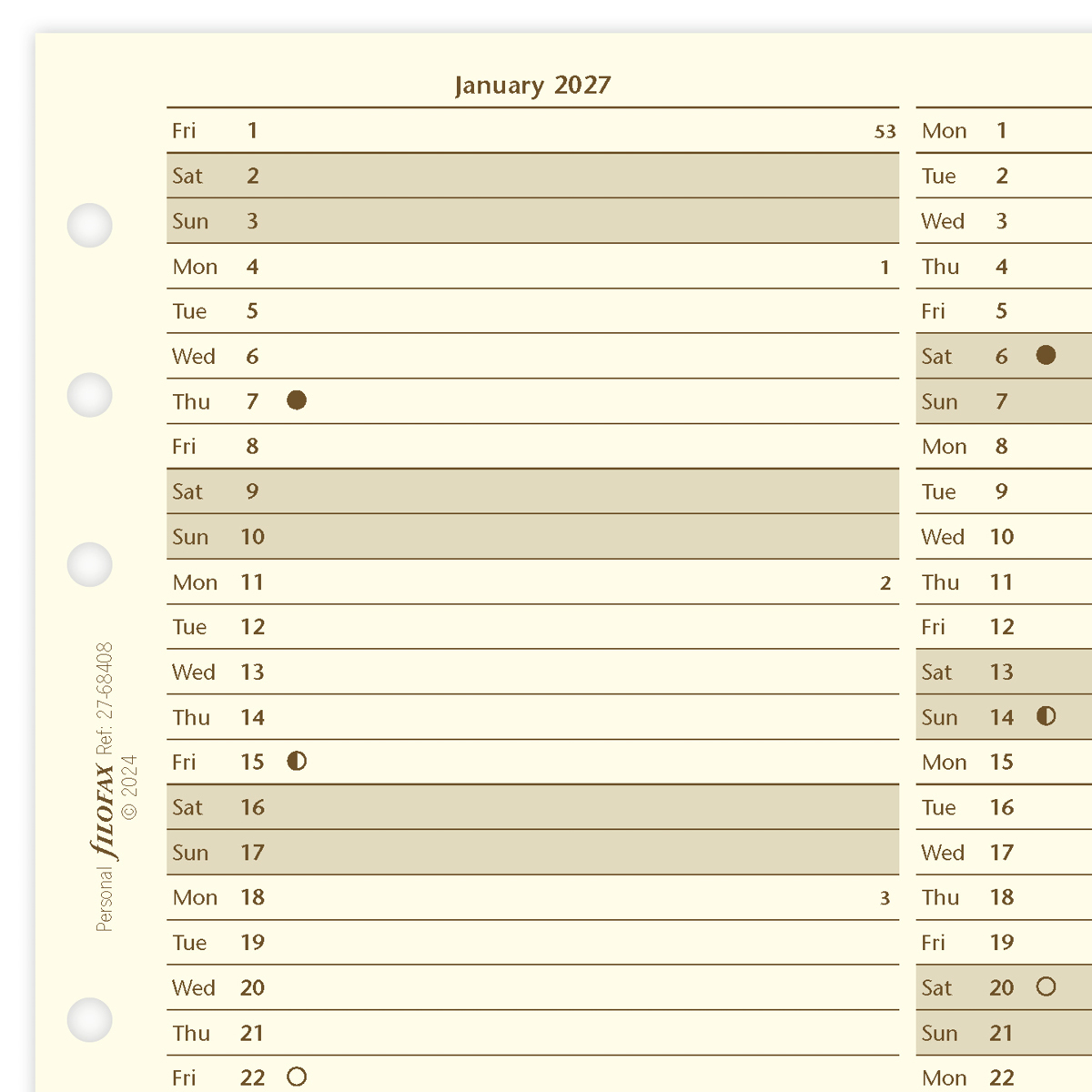 Filofax Naptárbetét Éves Vertikális Personal Krém 2027