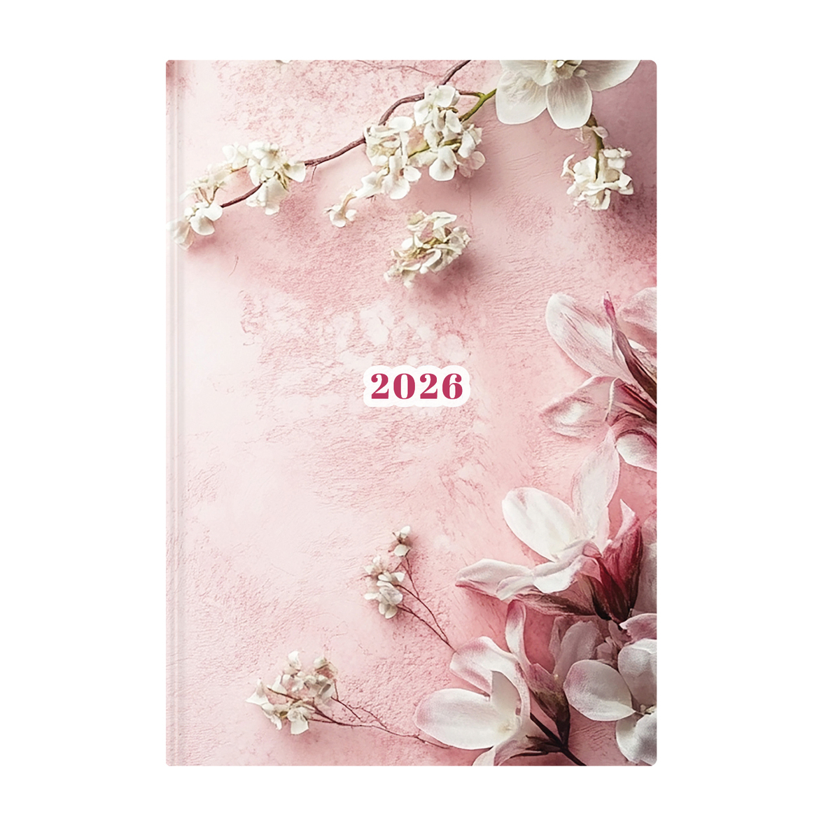 Színes grafikával díszített, matt fóliával bevont, fehér tömbös napi beosztású naptár, jelzőszalaggal és sarokperforációval.