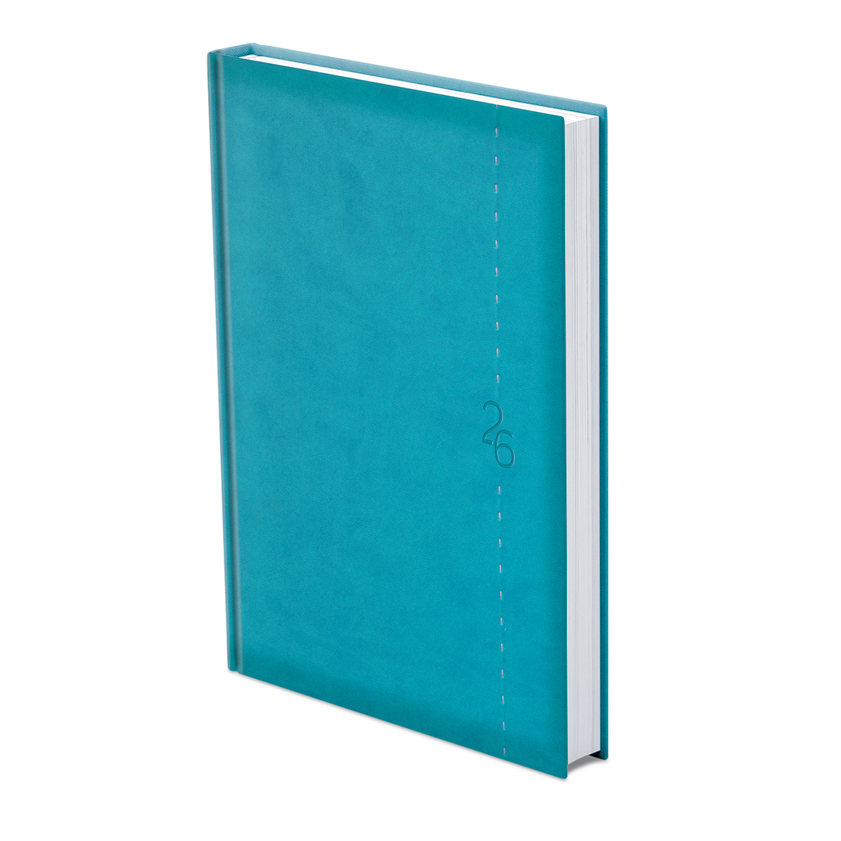Matt, bőrhatású, hőre színeződő műbőr bevonóval, függőleges dísztűzéssel készült, fehér tömbös napi beosztású naptár, jelzőszalaggal és sarokperforációval. Elöl-hátul szivacsos fedlap. Színes térképet tartalmaz.