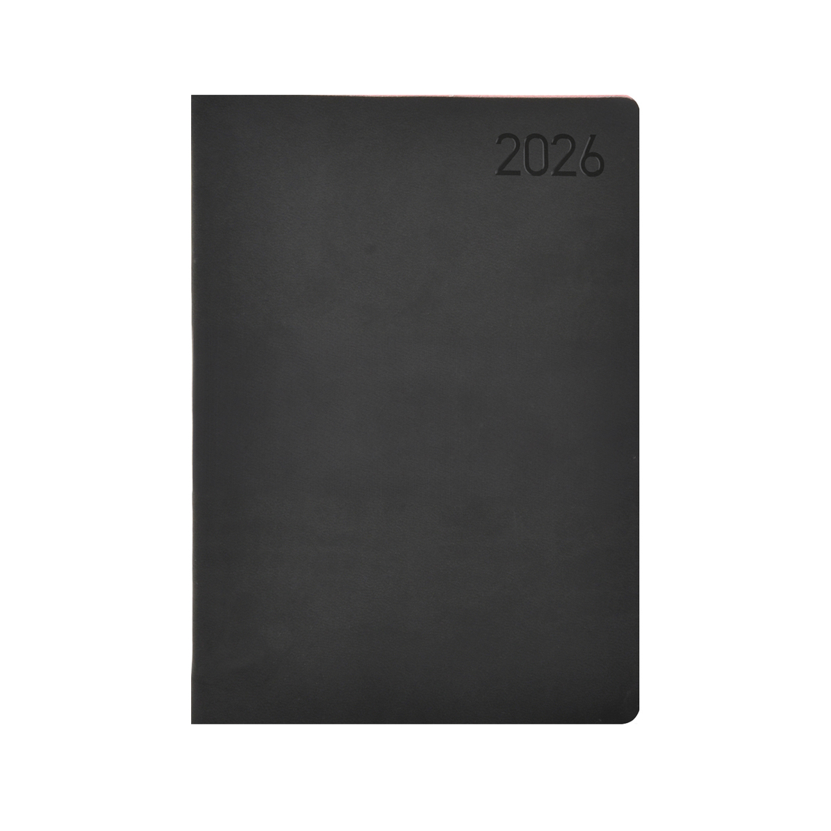 Matt, hőre színeződő műbőr bevonóval, flexibilis táblával készült, fehér tömbös napi beosztású naptár, jelzőszalaggal és sarokperforációval.