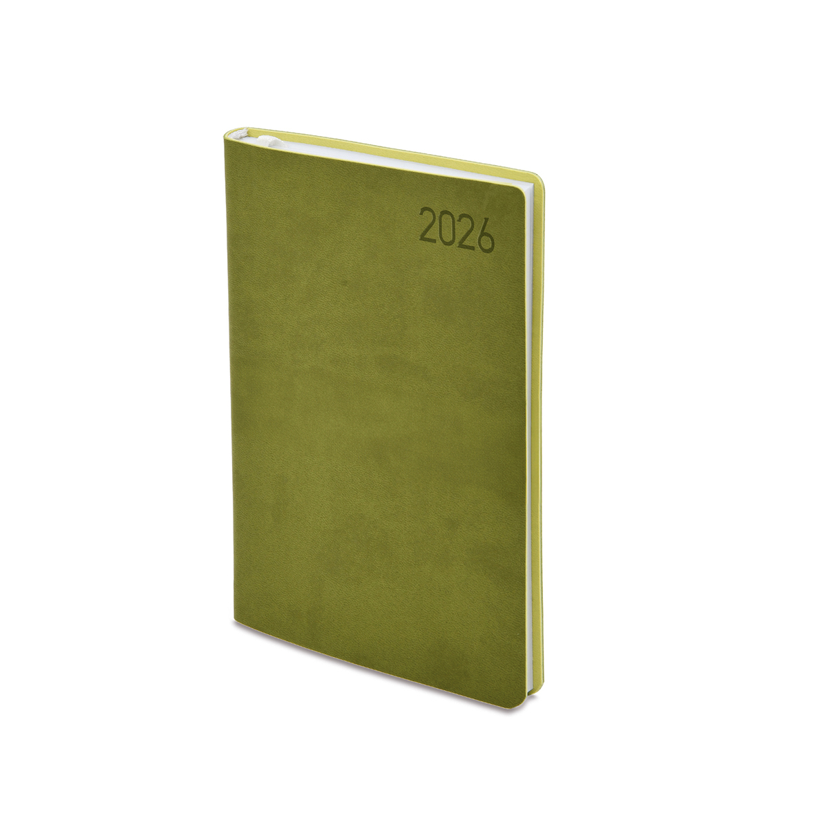 Matt, hőre színeződő műbőr bevonóval, flexibilis táblával készült, fehér tömbös, heti beosztású naptár, jelzőszalaggal.
