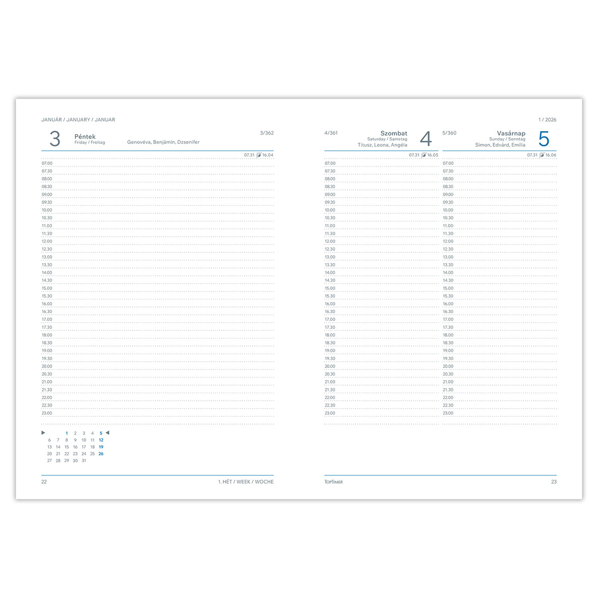 Nero, A5 napi beosztású határidőnapló, Fekete-Kék