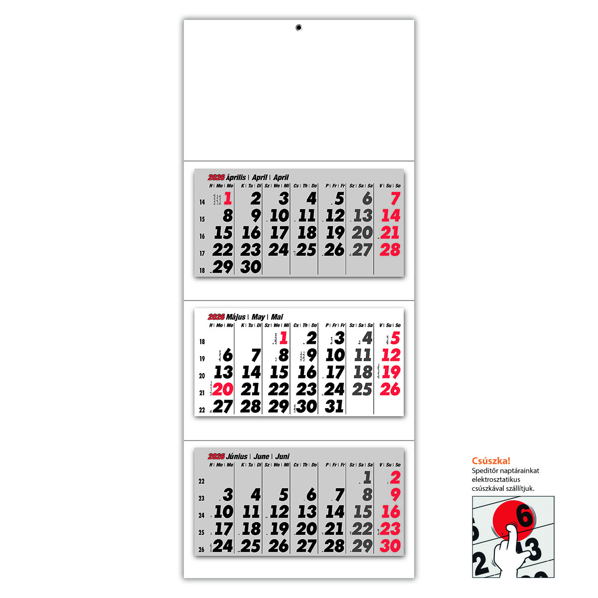 3 tömbös speditőr naptár - Üres, nyomtatható fejrésszel