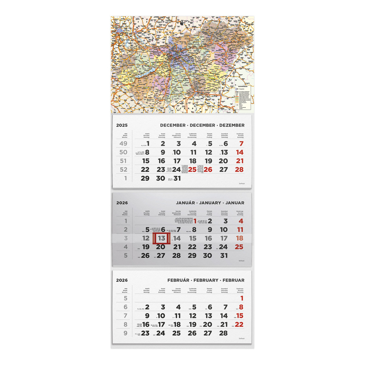 T074, 3 tömbből álló 3 havi speditőr naptár - Magyarország térkép fejrésszel