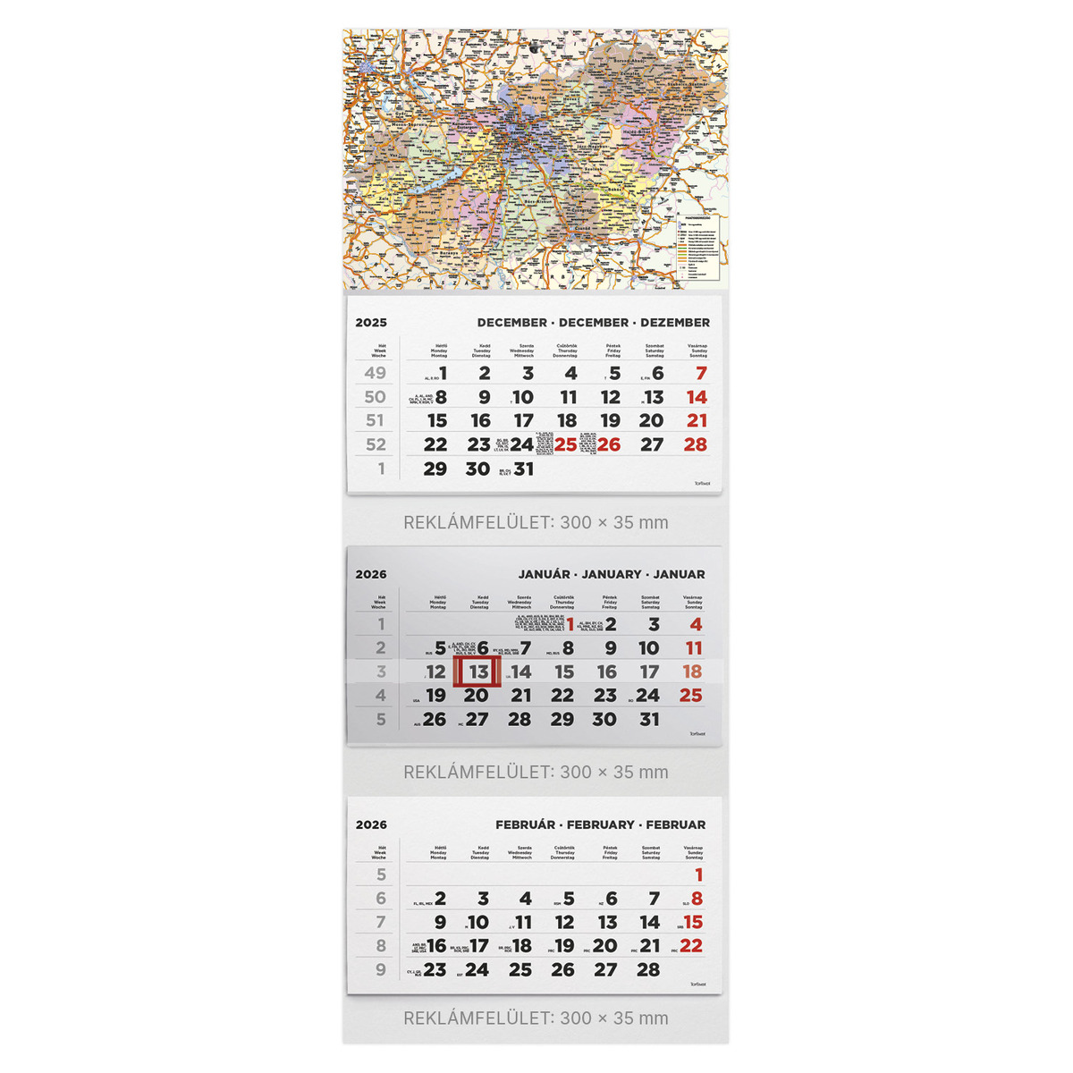 T070, 3 tömbből álló 3 havi speditőr naptár - Magyarország térkép fejrésszel