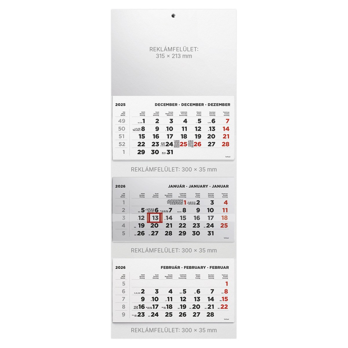 T070, 3 tömbből álló 3 havi speditőr naptár - Üres, nyomtatható fejrésszel