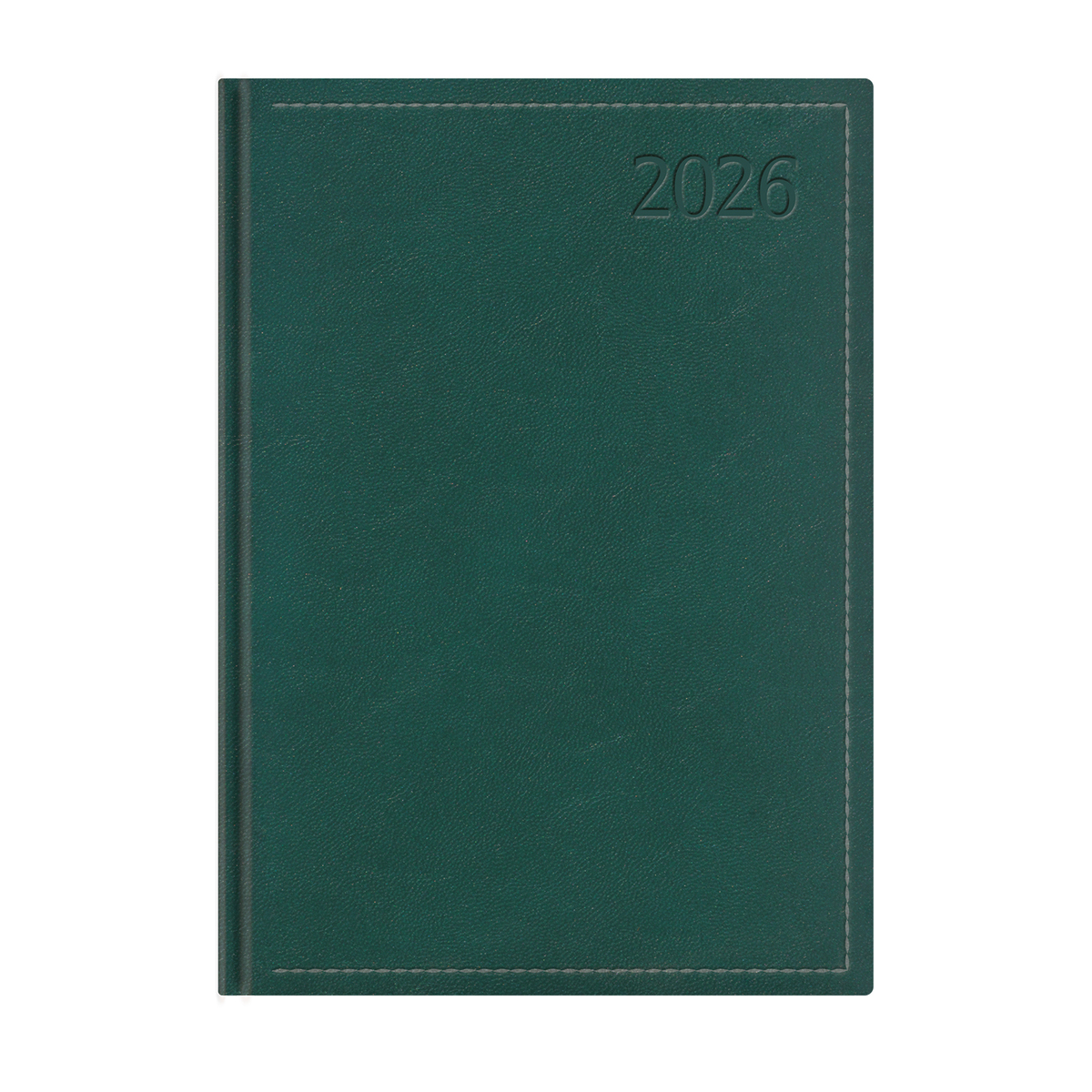 Fényes műbőr bevonóval készült, fehér tömbös, heti beosztású naptár, jelzőszalaggal és sarokperforációval. Elöl szivacsos fedlap. Színes térképet tartalmaz.