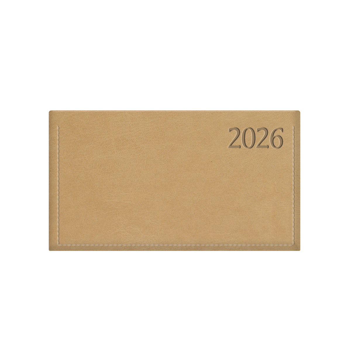 Fényes műbőr bevonóval készült, fehér tömbös fekvő zsebnaptár jelzőszalaggal. Színes térképet tartalmaz.