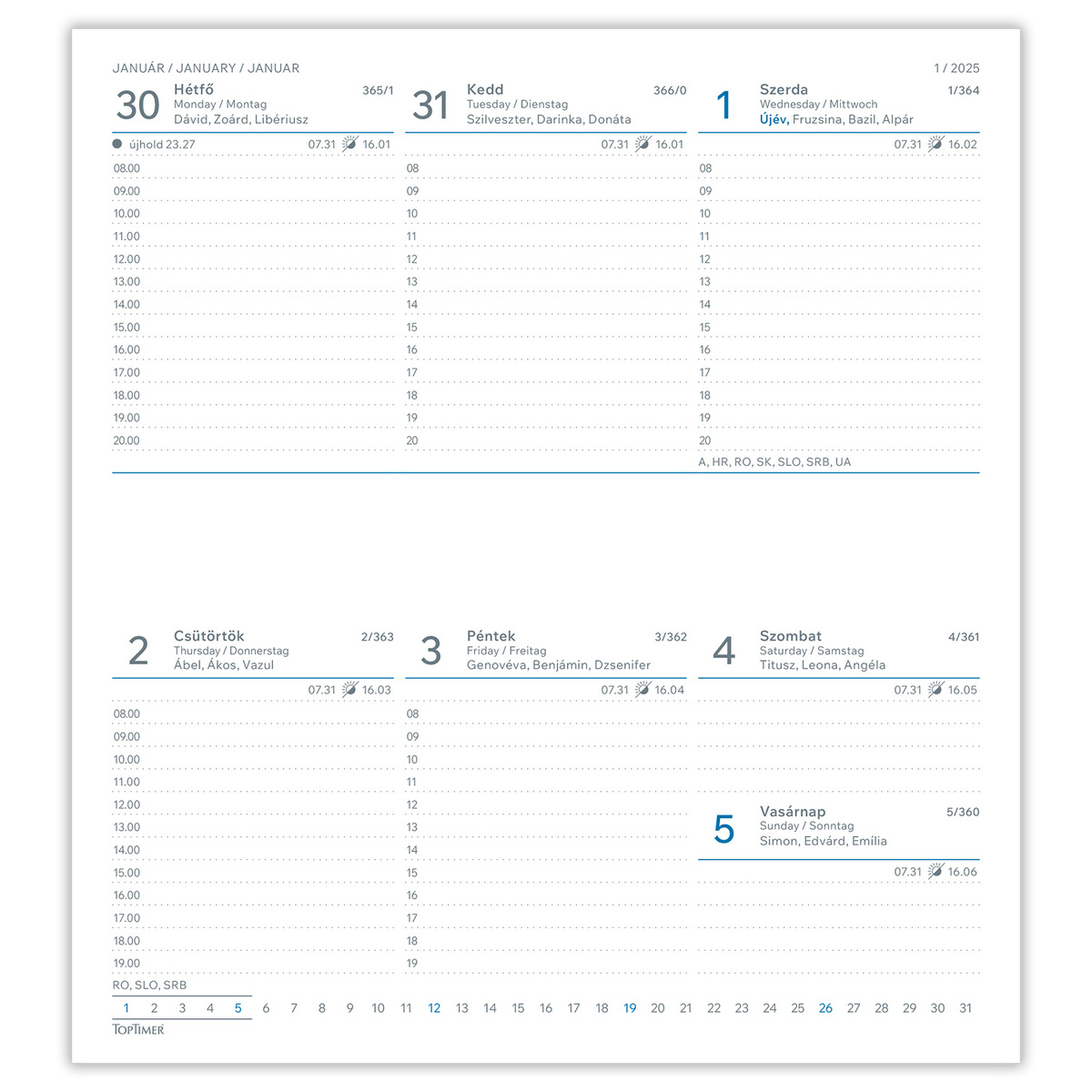 | Naptár beosztás |